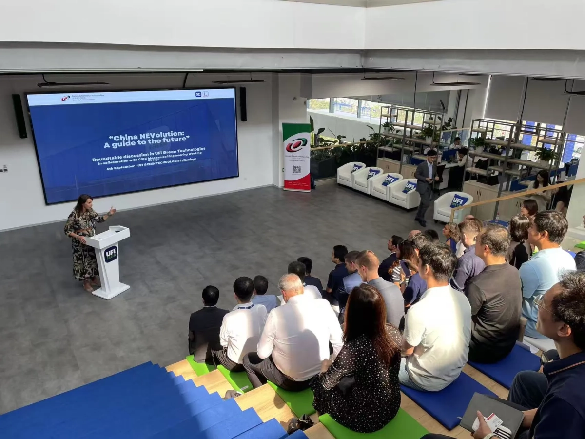 JIAXING, China – September 4, 2025 – The China-Italy Chamber of Commerce (CICC) and its Mechanical Engineering Working Group (MEWG) hosted a pivotal roundtable discussion in collaboration with UFI Green Technologies. The event brought together representatives from leading New Energy Vehicle (NEV) companies, along with over 40 industry leaders, experts, and professionals. Centered on the theme "China NEVolution: A Guide for the Future," the gathering facilitated in-depth discussions on the rapid evolution and future trajectory of China's NEV market, with participants exchanging insights on technological innovations, market opportunities, and collaborative prospects in the sector.